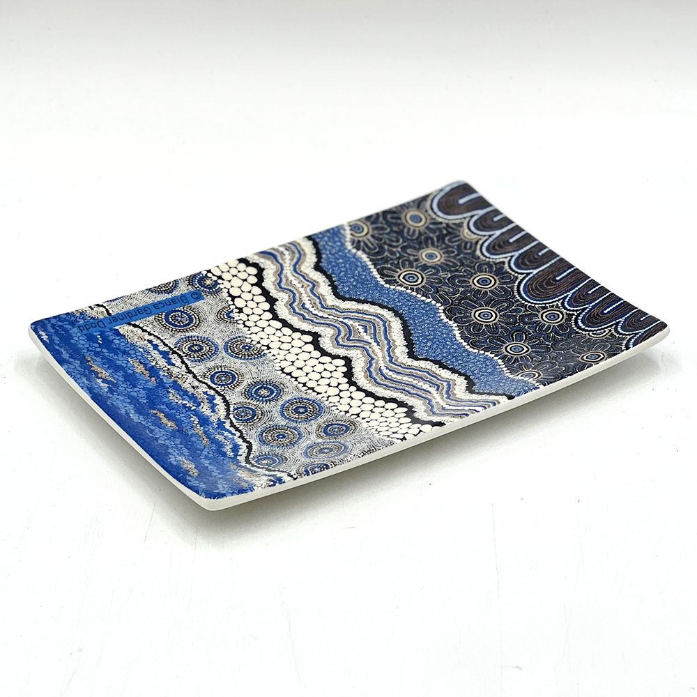 Bianca's heritage descends from the Aboriginal community of Goodooga, in the northwestern region of NSW, the traditional land of the Kamilaroi/ Gamilaroi people. This elegant and restful artwork describes the landscape that Bianca loves, where the land meets the sea.