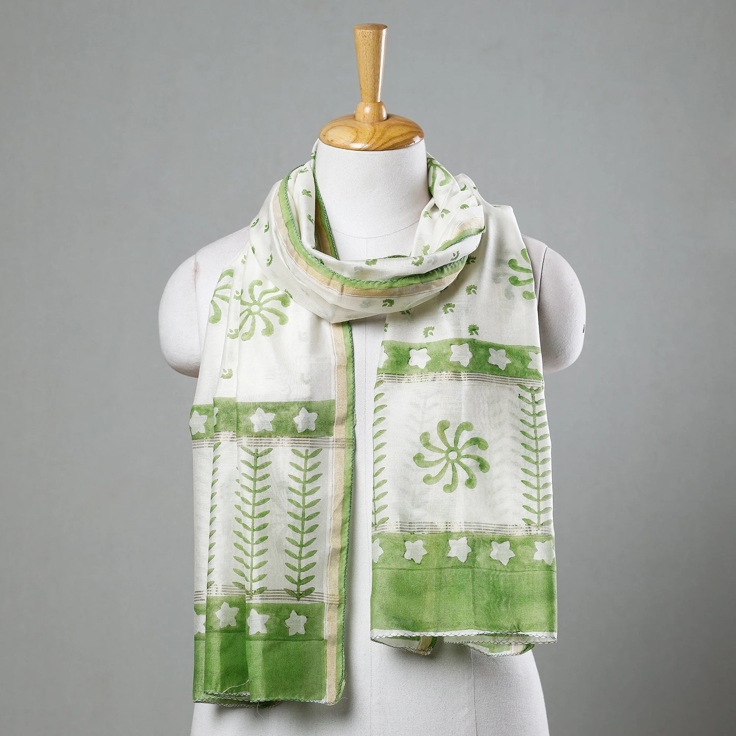 Sanganeri Block Printed Chanderi Silk Handloom Stole